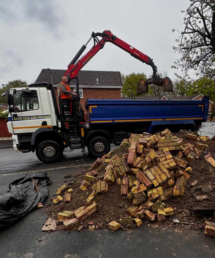 At J Evans Grab Hire, we offer extremely cost-effective alternatives to hiring a skip for waste disposal. Our grab hire services can collect two and a half times as much waste as a regular skip can hold. This holds obvious benefits, not least for commercial companies who can save manpower and time by using our service as opposed to a skip hire company.